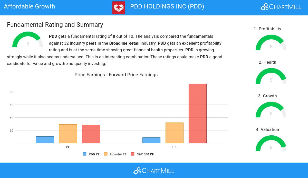For an up to date full fundamental analysis you can check the fundamental report of PDD
