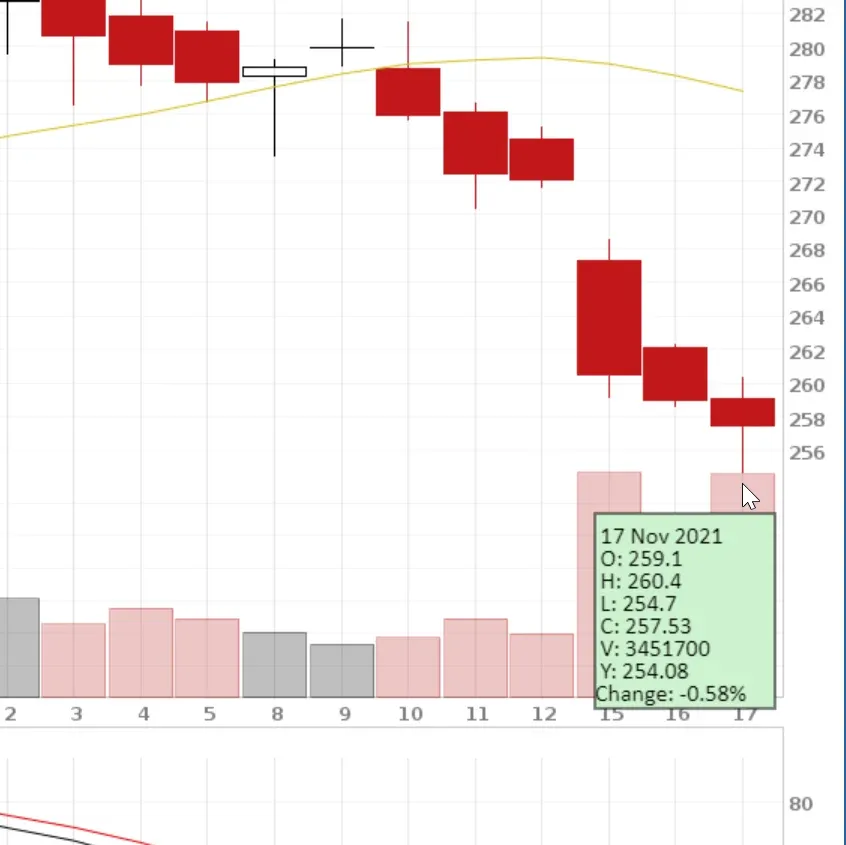 Since we are talking about a mean reversion strategy we are going to look for a reversal signal where we take a position which is opposite to the existing trend.