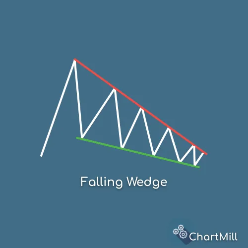 A falling wedge is the opposite, with prices moving downward and the same wedge shape created by a narrowing range. Logically, this is also a reversal pattern but in this case bullish where it is assumed that the price will start to rise again.