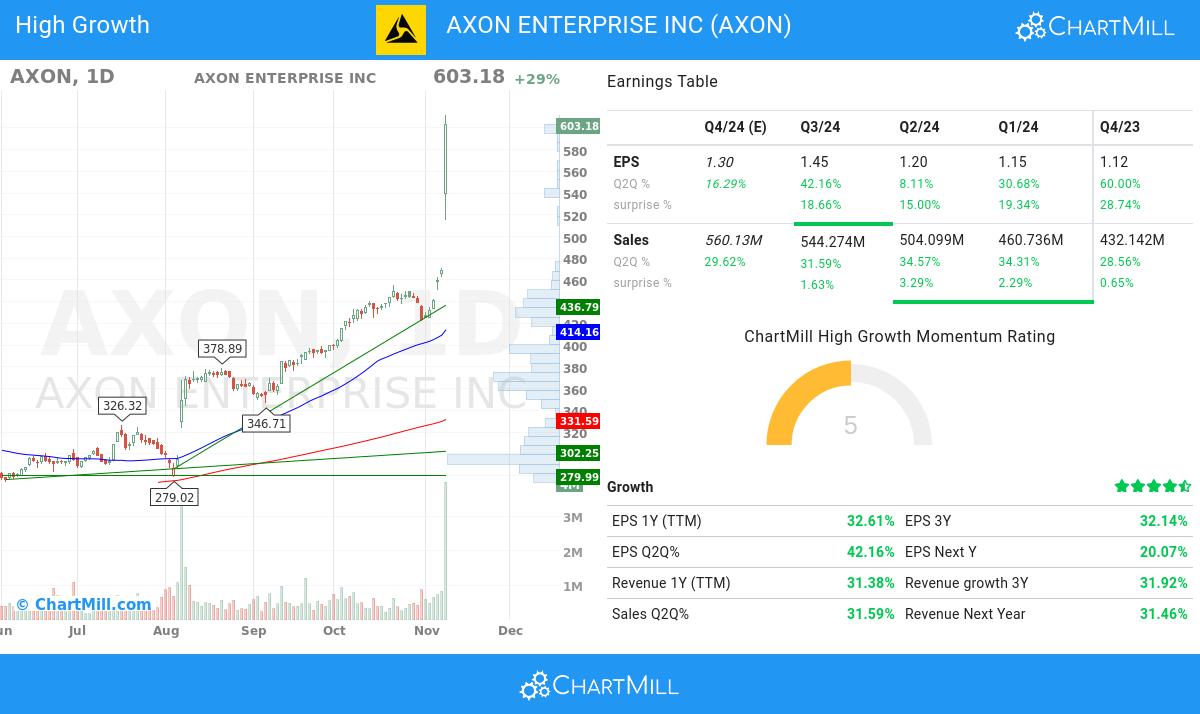 - AXON ENTERPRISE INC has experienced 31.59% q2q revenue growth, indicating a significant sales increase.