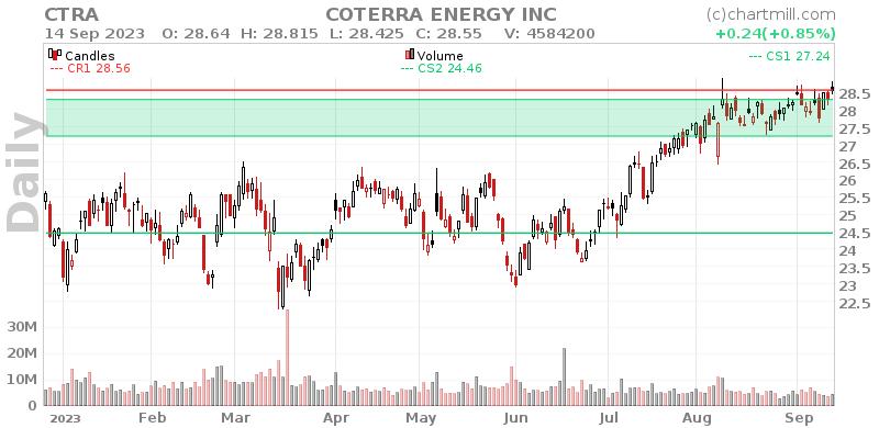 Our stock screener has identified COTERRA ENERGY INC (NYSE:CTRA) as a potential breakout candidate. This technical breakout setup pattern occurs when the stock consolidates after a strong uptrend. While the actual breakout is uncertain, it may be worth keeping an eye on NYSE:CTRA.