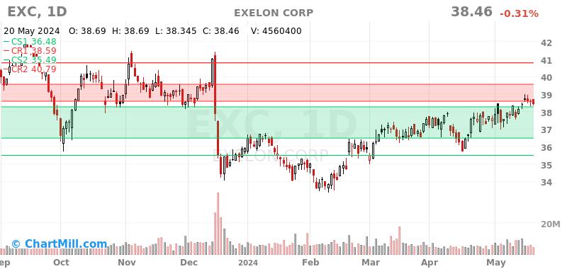 - In the last month EXC has a been trading in a tight range between 36.80 and 38.99.