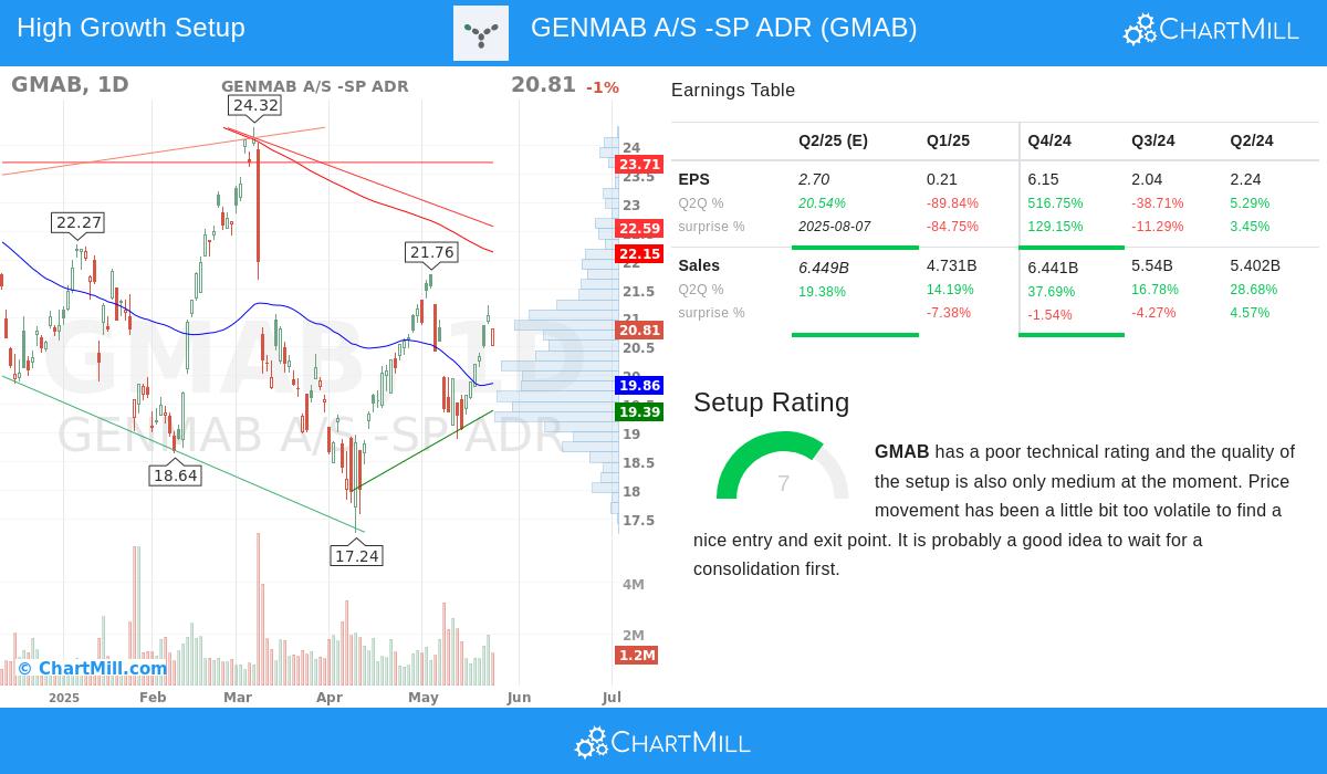 GENMAB A/S -SP ADR (NASDAQ:GMAB) was identified by our screener as a strong growth stock with a promising technical setup. The company combines solid fundamentals with improving price action, making it worth a closer look.