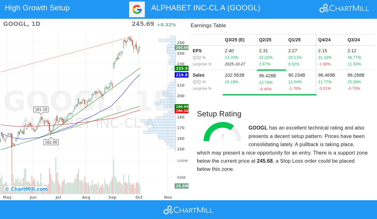 The technical view for Alphabet matches its sound basics, showing what technical experts call a bull flag formation. This formation usually happens after a notable upward move when prices settle a little before possibly continuing their upward path. Now trading near its 52-week highs, the stock shows several positive technical signs.