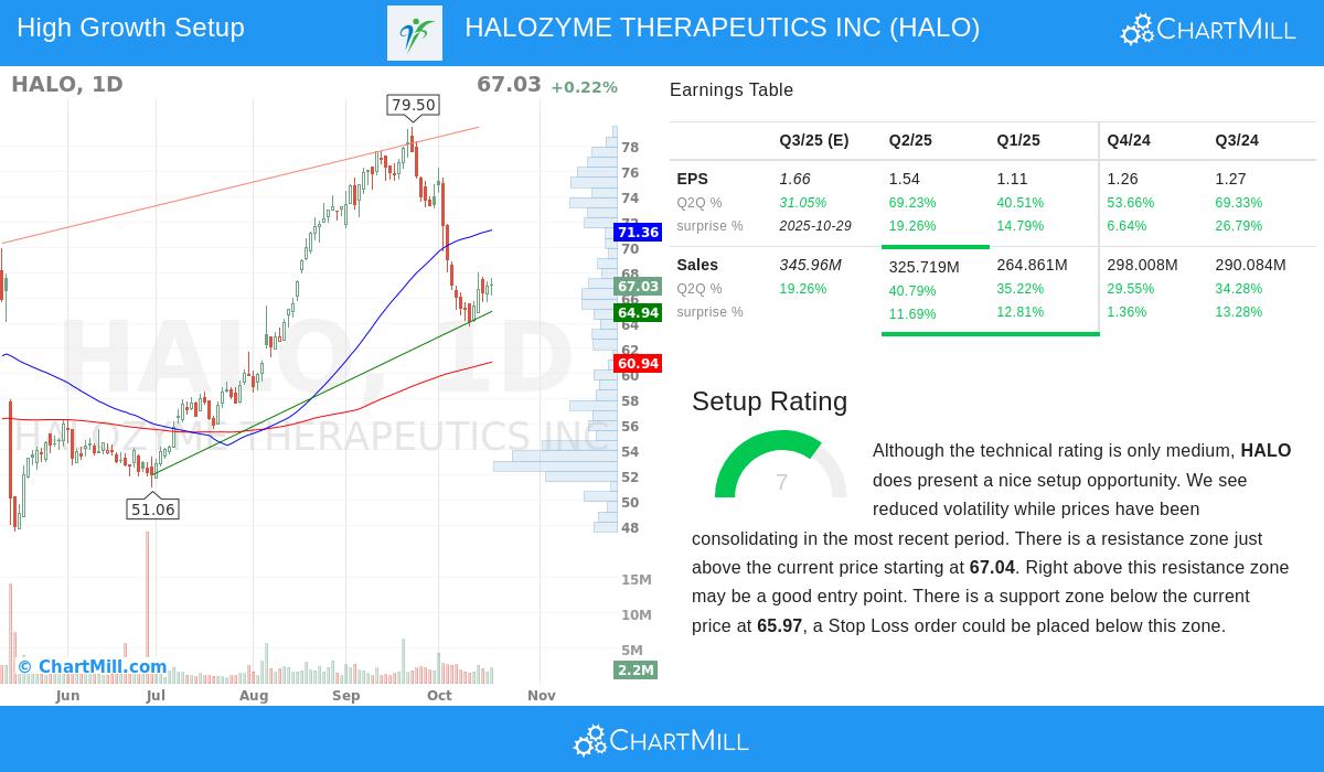 The technical analysis view shows a positive situation for possible price gains. Halozyme currently has a technical rating of 6 out of 10 with a more interesting situation rating of 7 out of 10, suggesting a period of stability may be happening before a notable move.