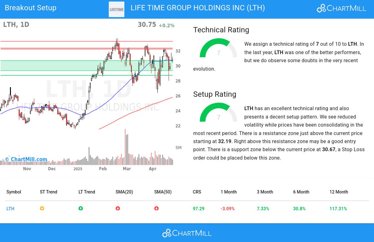 LIFE TIME GROUP HOLDINGS INC (NYSE:LTH) has been identified as a Technical Breakout Setup Pattern by our stock screener. This pattern typically occurs when a stock takes a pause after a significant rise, indicating the possibility of a continuation in the trend. While it's impossible to predict with certainty, it might be beneficial to monitor NYSE:LTH.