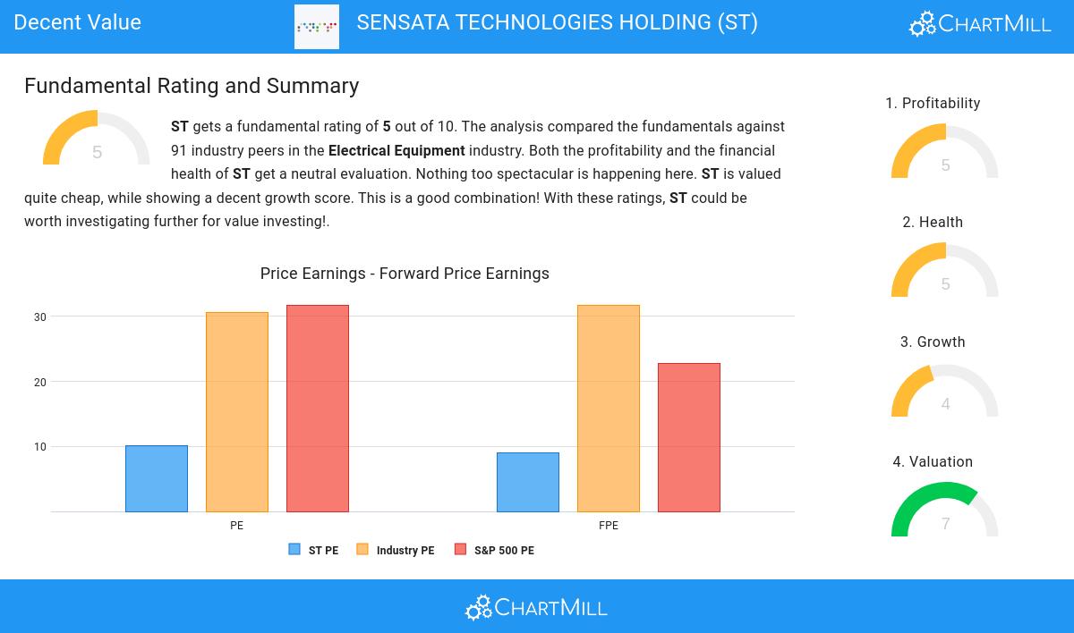 - A Price/Earnings ratio of 10.14 indicates a reasonable valuation of ST.