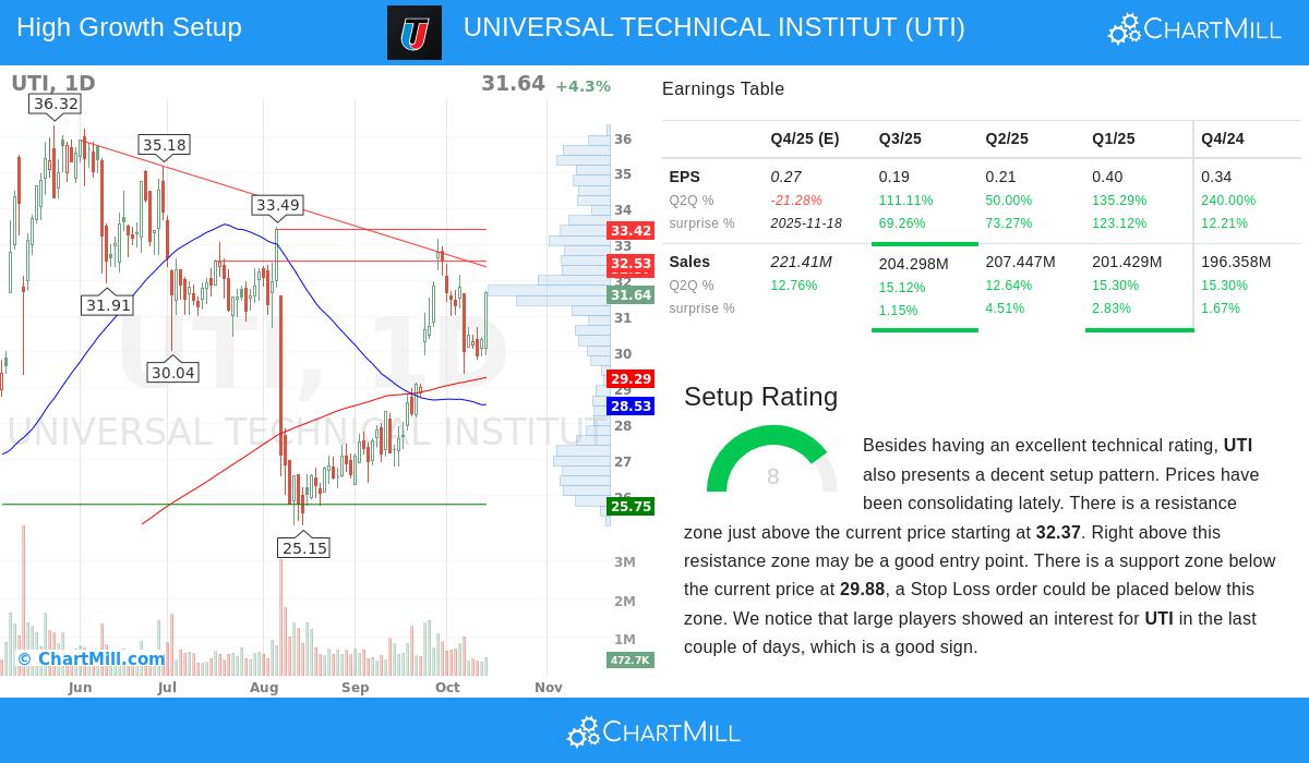 From a technical view, Universal Technical Institute shows a noteworthy chart formation that adds to its fundamental positives: